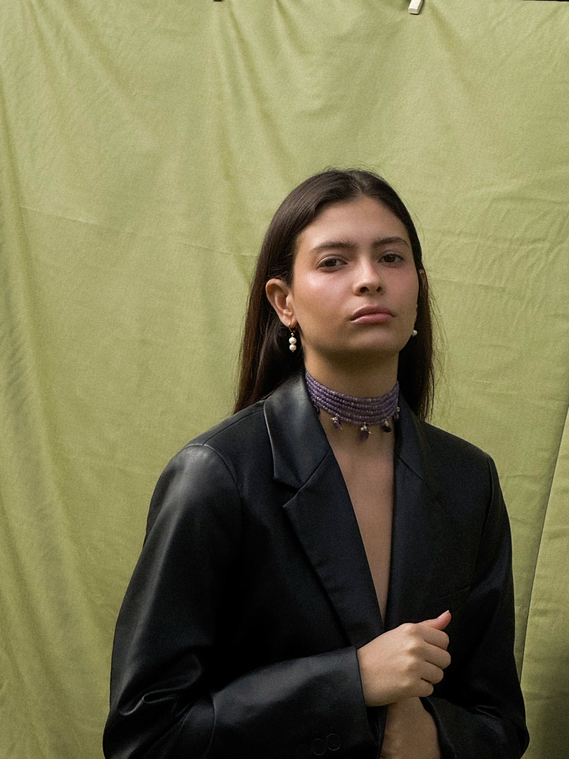 The Ametista Collar features an adjustable design with an extended chain, allowing you to customize the fit for ultimate comfort and style.
